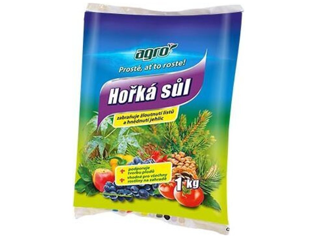 Agro Horká soľ je kryštalické horečnaté hnojivo určené na rýchle odstránenie skrytého i zjavného nedostatku horčíka. Tento nedostatok sa prejavuje hnednutím a opadávaním ihličia alebo žltnutím listov. Správnym používaním tohto hnojiva môžeme týmto problémom účinne predísť. Vysoký obsah horčíka podporuje tvorbu chlorofylu (zeleného farbiva) a je okamžite dostupný pre rastliny.