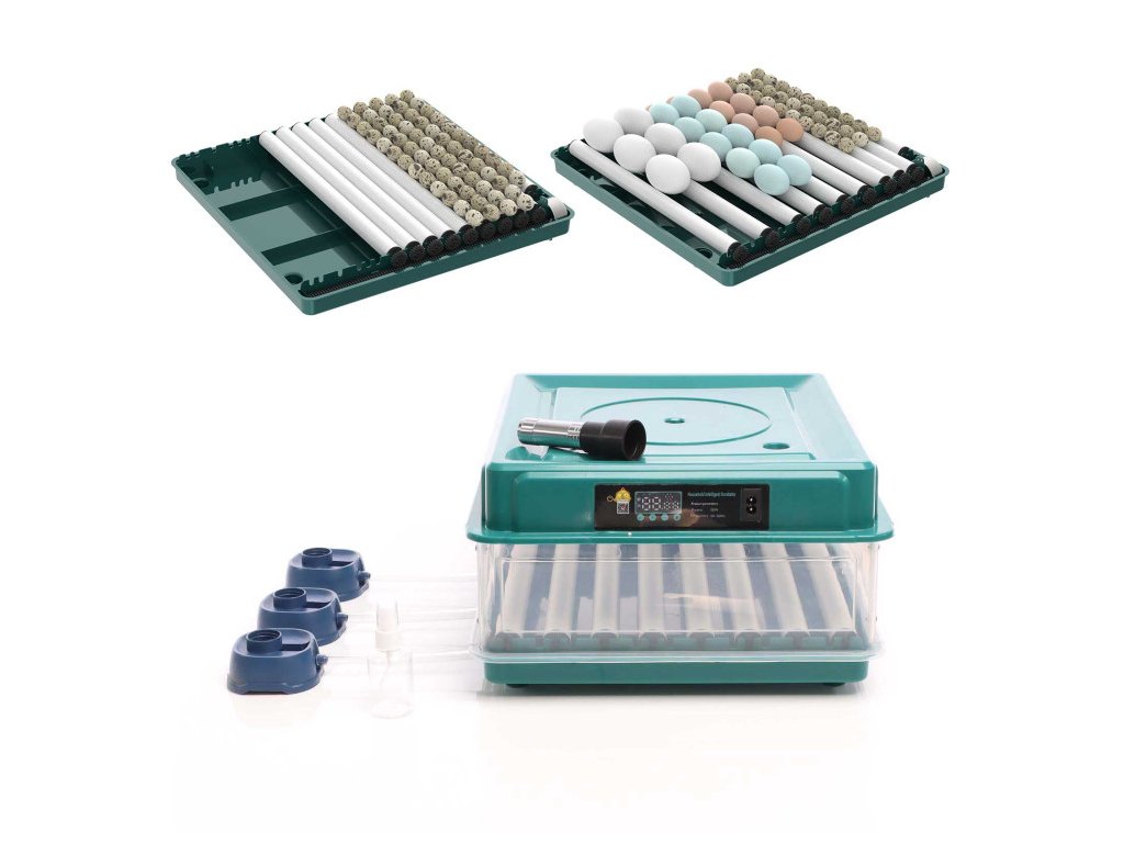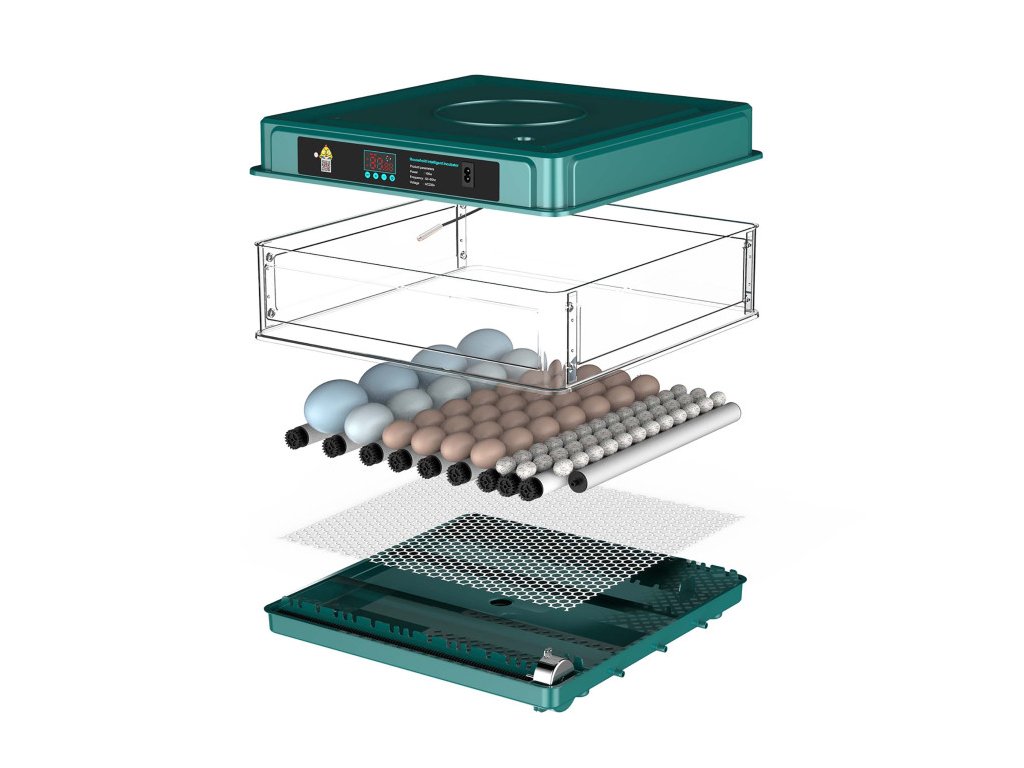 Maximálna kapacita na slepačie vajcia je cca 55 vajec, na prepeličie vajcia 140 vajec, na husacie vajcia 35 vajec.
