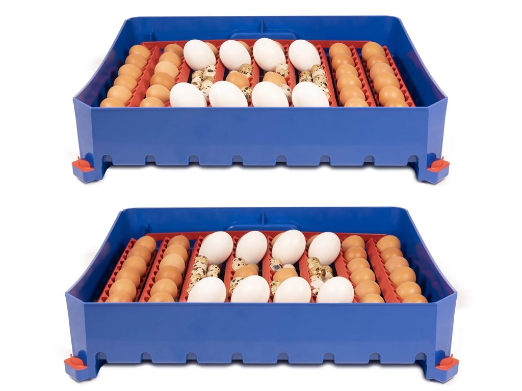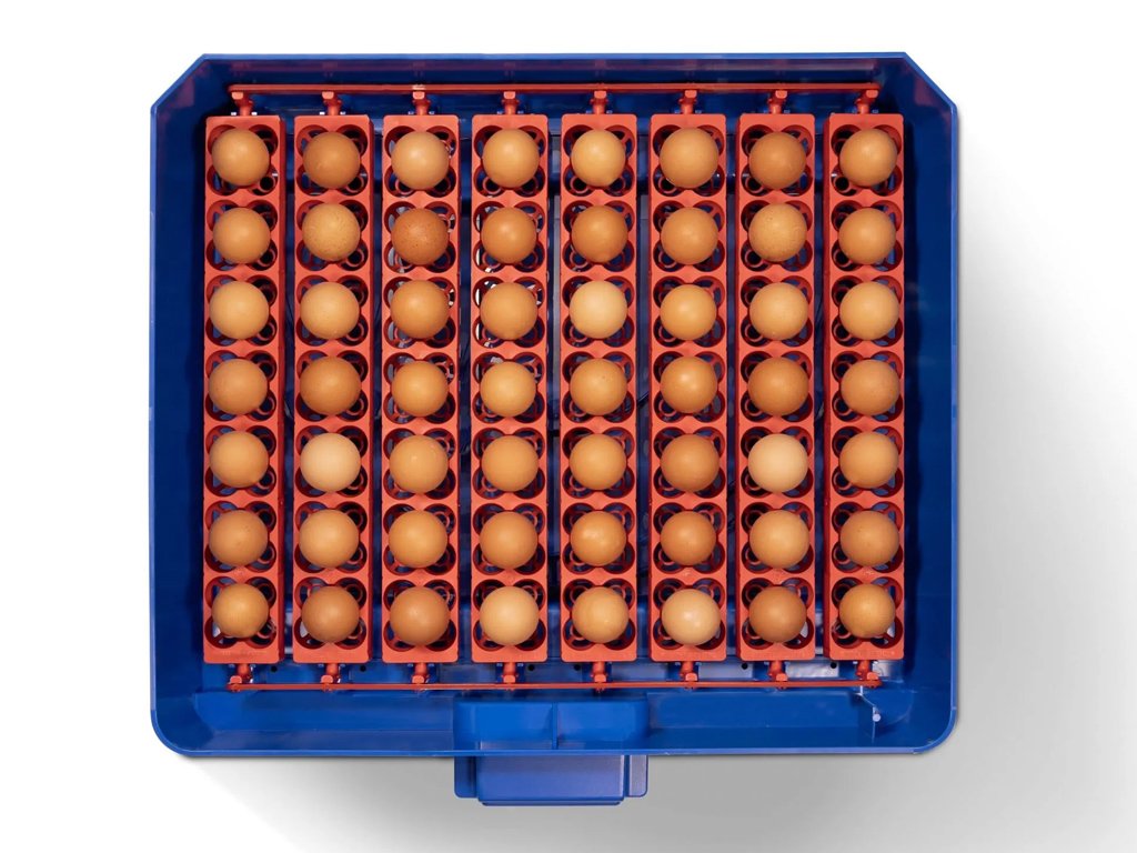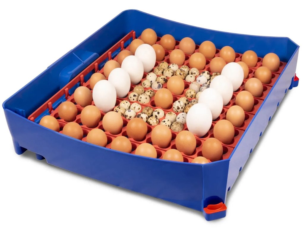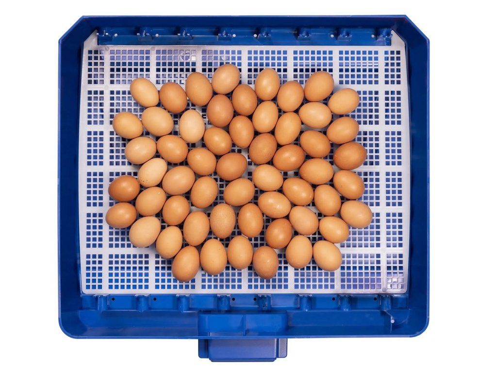 Kapacita s otočným roštom: 56 slepačích, 224 prepeličích, 56 husacích, 56 kačacích alebo 56 bažantích vajec.