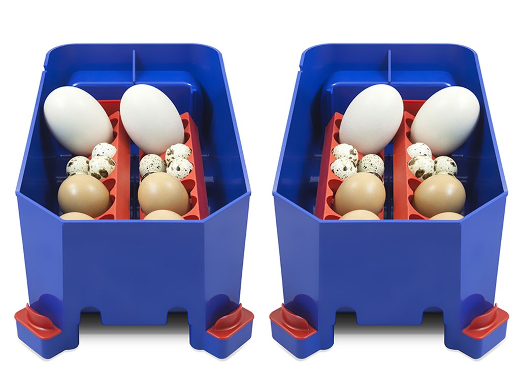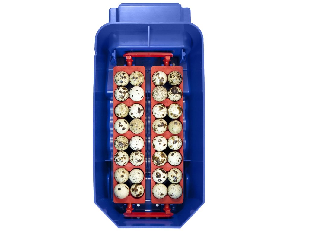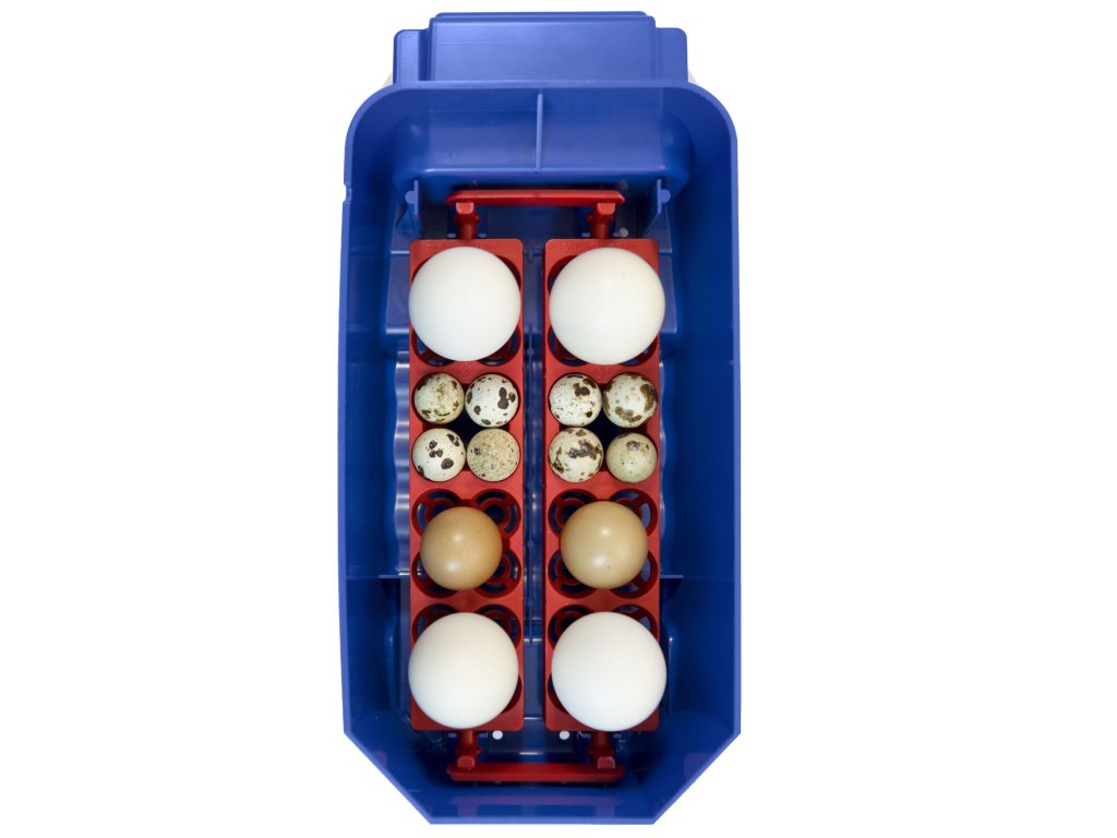 Kapacita s otočným roštom: 8 slepačích, 32 prepeličích, 8 husacích, 8 kačacích alebo 8 bažantích vajec.