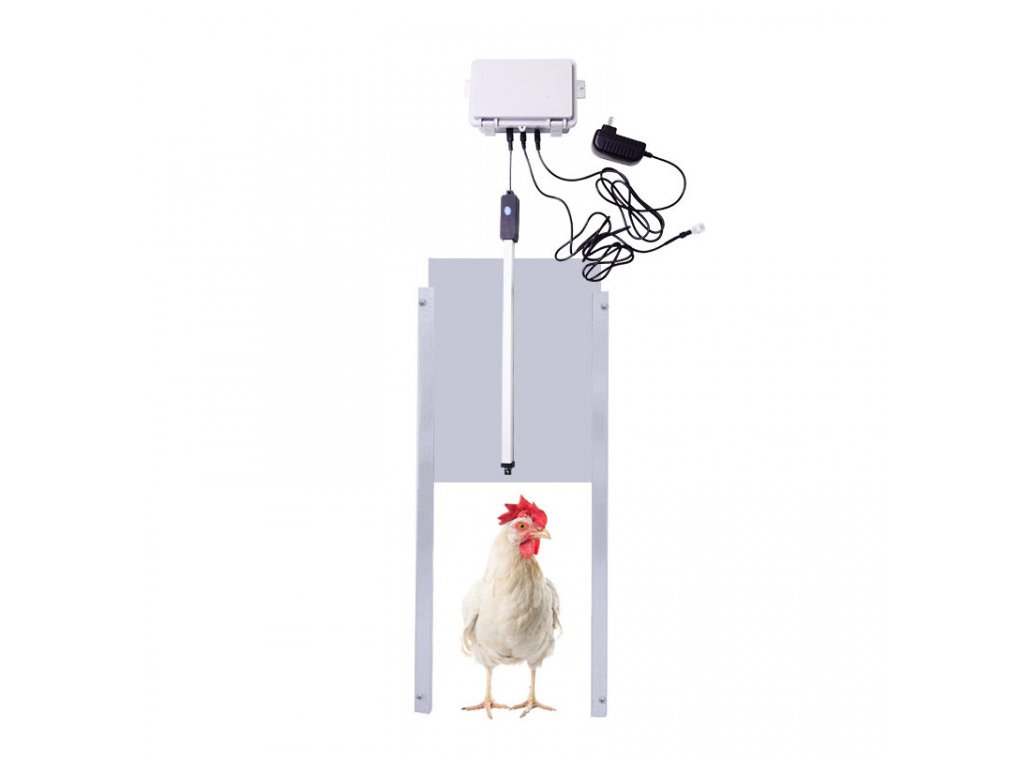Automatické dvierka sú vybavené svetelným senzorom , programovateľným časovačom , indikátorom stavu batérie, bezpečnostnou funkciou núdzového zastavenia a napájaním pomocou adaptéra 12V do zásuvky.