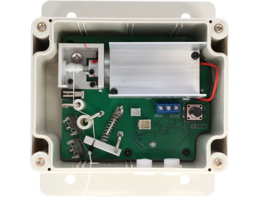 Automatické otváranie a zatváranie kurína so svetelným senzorom, nastavenie podĺa denného svetla bez časovača. Jedná sa o jednotku automatického ovládania pohybu dvierok až do 2,5 kg (dvierka nie sú súčasťou balenia).