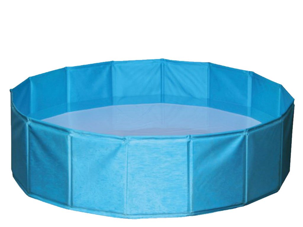 Skladací bazén pre psov, z odolného plastového materiálu, montáž/demontáž bez čerpadla, praktická výpust na dne bazéna, štruktúrované dno proti pošmyknutiu, stabilné vystužené bočné steny, rozmery Ø120x30 cm.