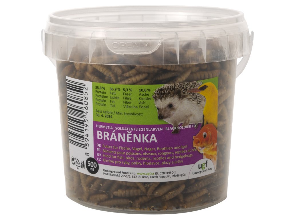 Branenka je prirodzenou potravou pre veľkú skupinu živočíchov. Sušené larvy bránenky sú 100% prírodné doplnkové krmivo vtákov, rýb, plazov ale aj drobných cicavcov, ako sú ježkovia, myši alebo potkany. Ide o vhodnú a cenovo dostupnejšiu alternatívu k múčnemu červu.