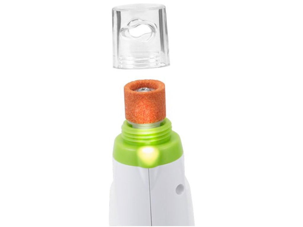 Bezdrôtová brúska na pazúriky, pre psy a mačky, jemné, rýchle, tiché a ľahké brúsenie, nastaviteľný ochranný kryt, dva rýchlostné stupne, integrované LED svetlo, až 70 minút na jedno nabitie, rýchlosť 12 000 ot./min, rozmery 18x4,7x3,5 cm.