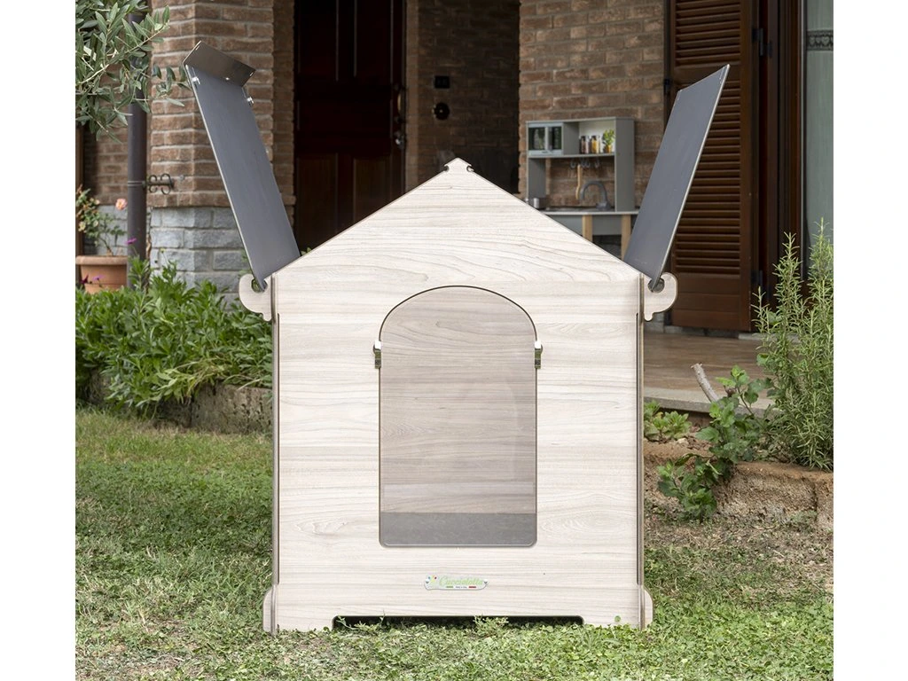 Luxusná búda pre psa s rozmermi 103x120x112 cm so sedlovou strechou. Bezkonkurenčná búda pre Vášho maznáčika vyrobená z viacvrstvového HPL laminátu krásne tepelne izoluje, neabsorbuje pachy ani tekutiny, a nevyžaduje takmer žiadnu údržbu. Psie búda je vybavená otváracou strechou pre ľahké čistenie. Vysoká pevnosť a odolnosť materiálu zaručuje výbornú stabilitu a dlhú životnosť.