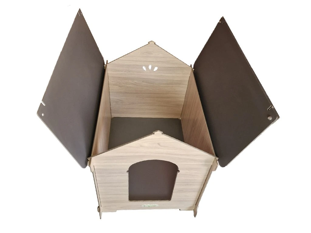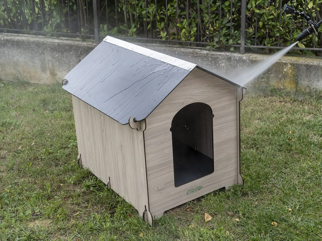 - Psie búda vyrobená touto inovatívnou technikou je vodotesná, odolná voči zápachu a neuvoľňuje žiadne toxíny nebezpečné pre životné prostredie a pre zdravie psa.