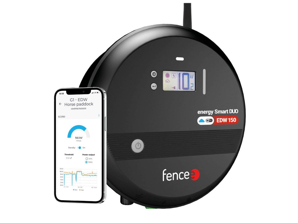 Generátor Smart DUO EDW s pripojením cez Wi-Fi 2,4 GHz. Neobmedzené ovládanie mobilným telefónom prostredníctvom aplikácie fencee Cloud. 24/7 informácie o aktuálnom stave ohradníka. Výkonný šikovný zdroj elektrického ohradníka (230 V/12 V), vhodný pre dlhé a vegetáciou zaťažené ohrady až 120 km dlhé. Univerzálne použiteľný pre všetky zvieratá . LCD displej. Možnosť prepínania výkonu. Optimalizovaná spotreba energie.