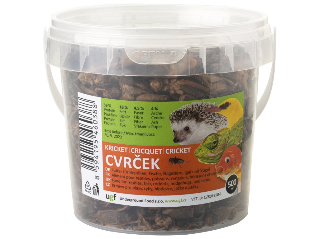 Sušené cvrčky sú 100% prírodným doplnkovým kŕmením určeným pre terárijné zvieratá (korytnačka, leguány, jašterice), ryby (KOI, zlaté rybičky, cichlidy), vtáky, hlodavce a iné malé cicavce. Sú však skvelou maškrtou aj pre psov, vrátane tých s potravinovými alergiami. Cvrčky sú zdrojom vysoko kvalitného proteínu (59%), vitamínov, minerálov a stopových prvkov.