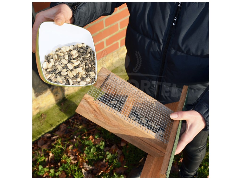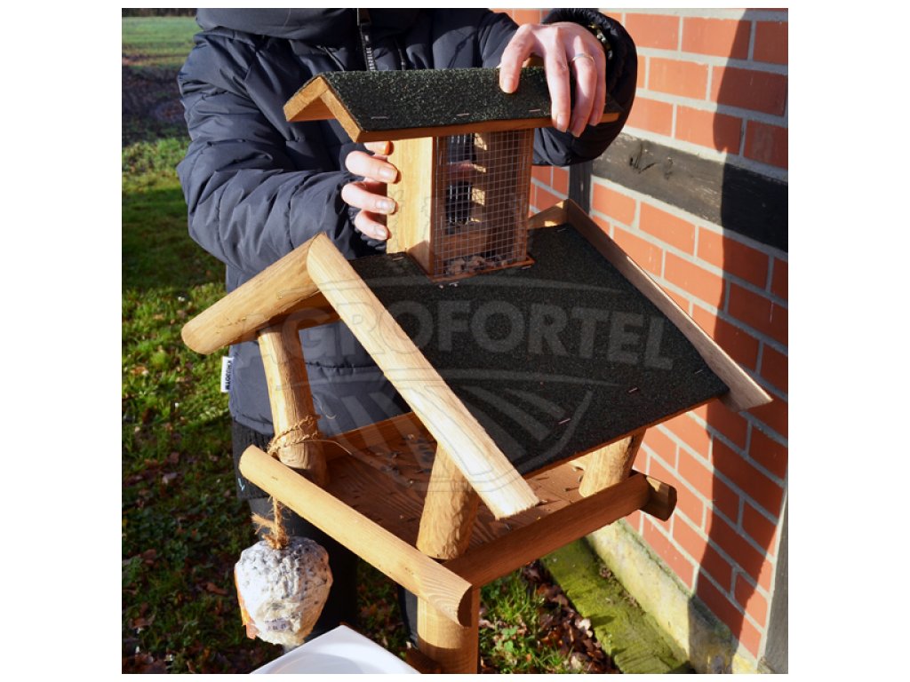 Úžasné krmítko Vtáčia farma bude iste ozdobou Vašej záhrady. Je vyrobené z kvalitného dreva z udržateľných lesov s certifikátom FSC.