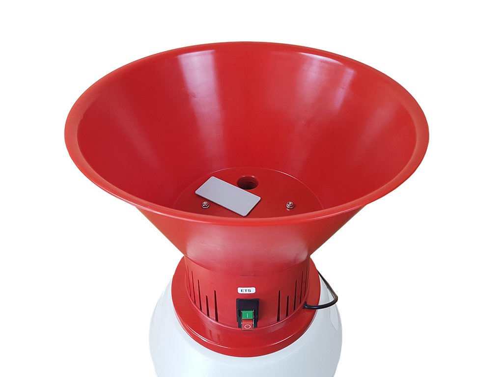 Násypka šrotovníka je v tvare lievika, ktorý automaticky napomáha plynulému pohybu šrotovanie suroviny dovnútra smerom k nožom, ktoré sešrotují na požadovanú hrubosť podľa zvoleného sita.