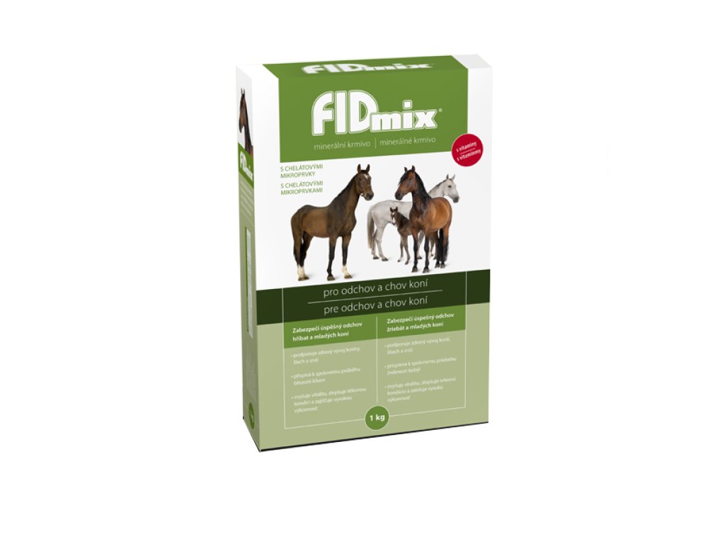 FIDmix je minerálne vitamínové krmivo pre kone všetkých vekových kategórií. U žriebät zabezpečuje správny vývoj kostry, šliach a srsti. Dospelým koňom FIDmix zvyšuje vitalitu, zabezpečuje dobrý zdravotný stav, reprodukciu, kondíciu a vysokú výkonnosť. Starším zvieratám poskytuje ľahký prístup k vitamínom, makroprvkom, mikroprvkom a aminokyselinám. FIDmix prispieva aj k správnemu priebehu gravidity a laktácie kobyl. Obsahuje všetky potrebné vitamíny a minerálne látky v optimálnej dávke na doplnenie a vyrovnanie ich dennej potreby.