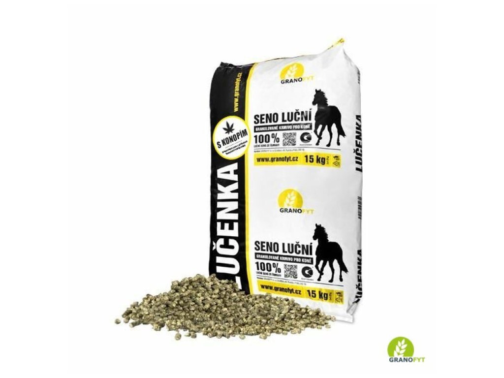 Prírodné objemné krmivo vyrobené z prirodzene sušených surovín zberaných v ideálnej fáze zrelosti. Tým je zaistený vysoký obsah živín a vysoká stráviteľnosť a chutnosť krmiva. Granulované seno s prídavkom konope prispieva k zlepšeniu zdravotného stavu koní, zlepšeniu príjmu potravy (kanabinoidy zvyšujú chuť do jedla) a zvýšenie imunity.