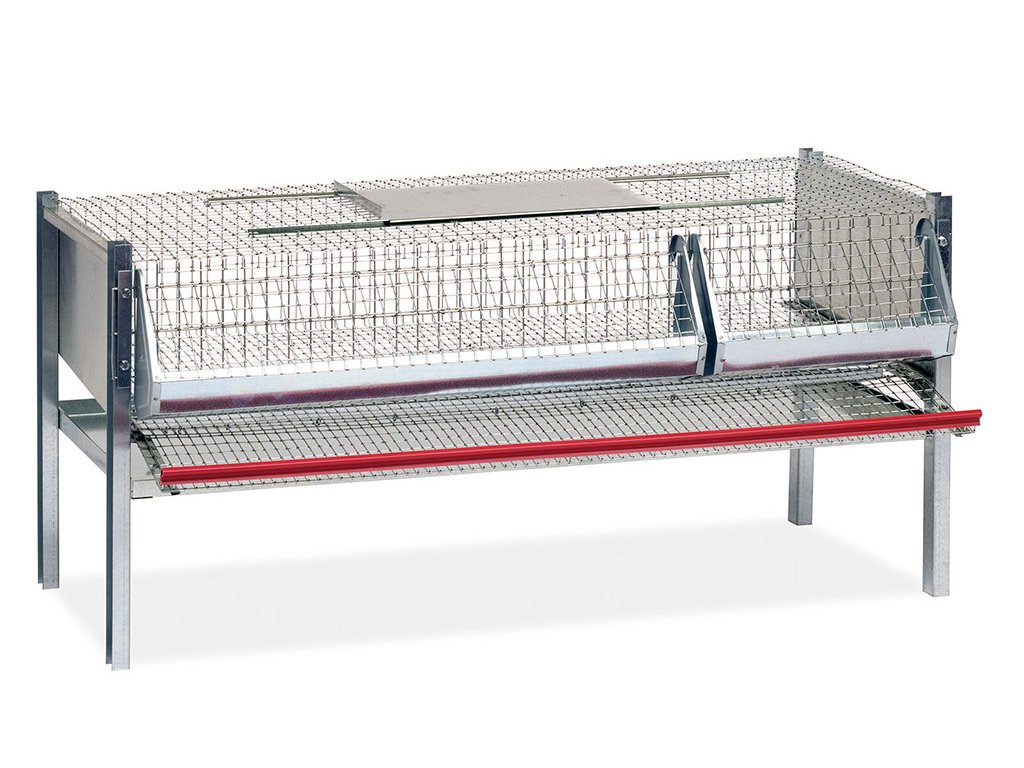 Klietka je vybavená závesným kŕmidlom a závesnou napájačkou. Kŕmidlo aj napájačka sú vyrobené z pozinkovanej ocele.