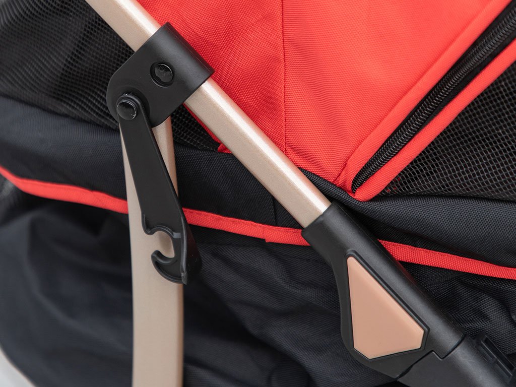 Kočík je ľahko skladovateľný. Behom chvíľky zložíte celý kočík a môžete ho uschovať, alebo pripraviť na prevoz autom. Korbu z kočíka ľahko vyberiete a máte tak prenosnú tašku na psa, zatiaľ čo oceľový rám môžete zložiť. Tiež samotná korba/taška na psa je skladacia. Pokiaľ len chcete psovi dopriať počas jazdy skvelý výhľad, stačí odopnúť a otvoriť 4-stupňovú skladaciu striešku.