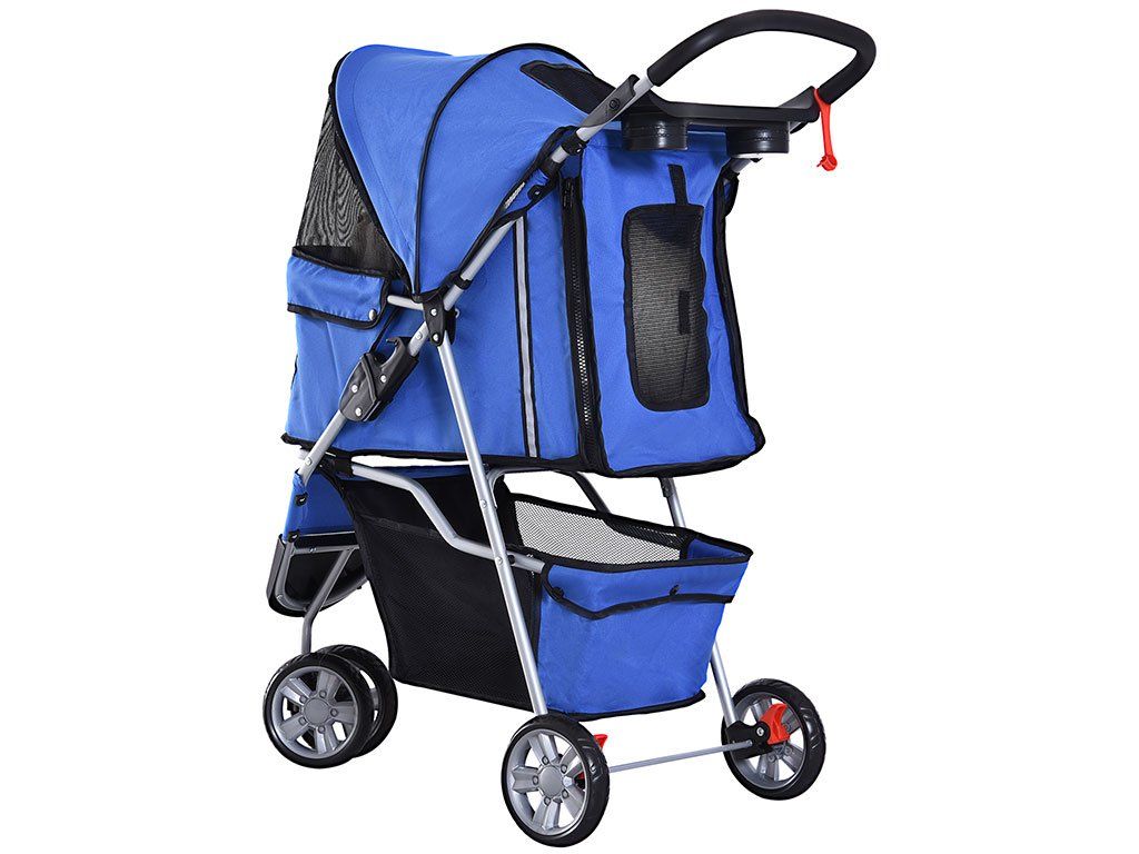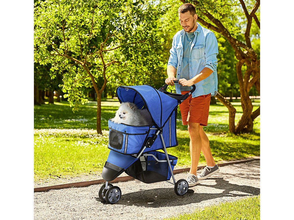 Pohodlný kočík pre psov môžete vyžiť na prechádzky do mesta, alebo do parku. Príjemnú jazdu zaistia dvojité otočné predné kolesá a zadné dvojité pevné kolesá, ktoré je možné zaistiť dvoma brzdami.