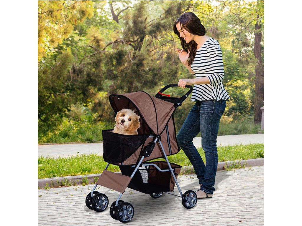 Pohodlný kočík pre psov môžete vyžiť na prechádzky do mesta, alebo do parku. Príjemnú jazdu zaistia dvojité otočné predné kolesá a zadné dvojité pevné kolesá, ktoré je možné zaistiť dvoma brzdami.