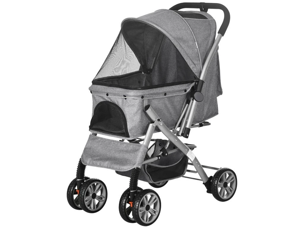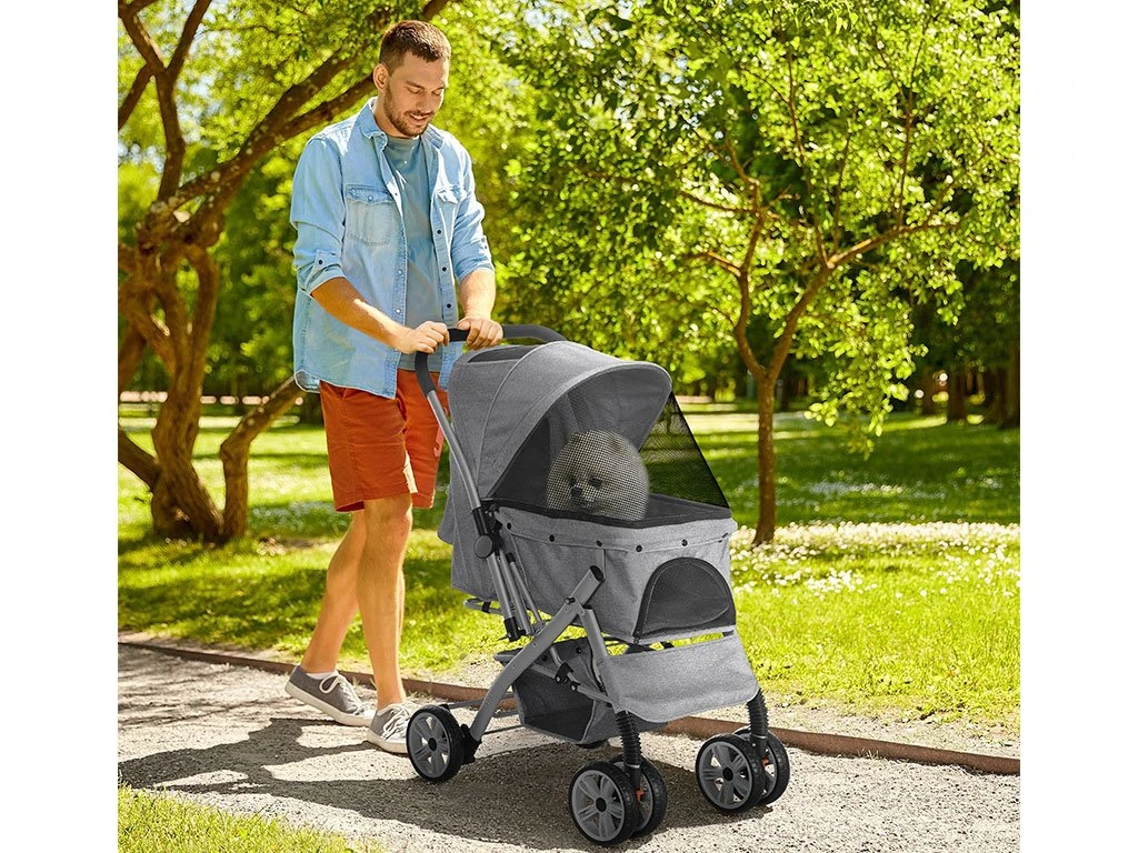 Pohodlný kočík pre psov môžete vyžiť na prechádzky do mesta, alebo do parku. Príjemnú jazdu zaistia dvojité otočné predné kolesá a zadné dvojité pevné kolesá, ktoré je možné zaistiť dvoma brzdami.