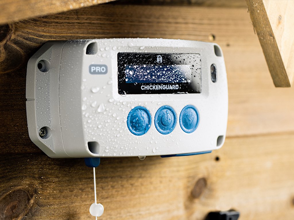 Chicken Guard Pro má veľmi výkonný motor, ktorý dokáže zdvihnúť až 2 kg. Súčasťou zariadenia je aj bezkontaktný snímač polohy dvierok. Prístroj je vybavený veľmi odolným puzdrom, a tak zaisťuje perfektnú ochranu pri extrémnych poveternostných podmienkach až do teploty -20 °C. Všetky potrebné informácie o nastavení sú prehľadne znázornené na dvojriadkovom LCD displeji. LCD displej prejde po určitej dobe nečinnosti do "režimu spánku", aby sa zvýšila životnosť displeja. Zariadenie znovu "prebudíte" stlačením tlačidla MENU. Pre nastavovanie programov slúžia extra veľké tlačidlá, aby bolo možné ich ovládať aj v rukaviciach.