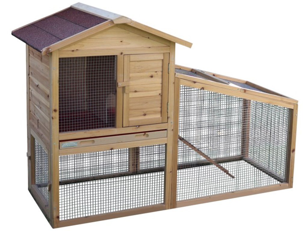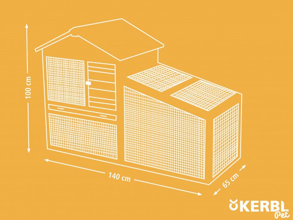 Drevená králikáreň pre králiky, morčatá, činčily a iné hlodavce o rozmeroch 140×65×100 cm. Jedná sa o praktickú králikáreň s výbehom, ktorá je vybavená vyberateľným trusníkom pre ľahké čistenie. Bezproblémový prístup do králikárne zaisťujú predné a bočné dvierka.