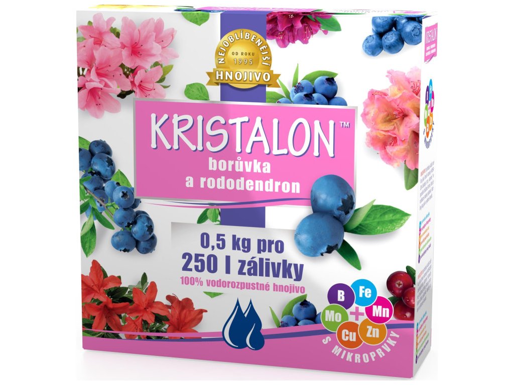 KRISTALON Čučoriedky a rododendron je vynikajúce kryštalické hnojivo, ktoré je vodorozpustné a určené špeciálne pre rododendrony, azalky, čučoriedky, vresy a ďalšie kyslomilné rastliny. Toto hnojivo prispieva k lepšiemu zakladaniu kvetov, ktoré sú potom viditeľne bohaté a veľké, vďaka priamej absorpcii fosforu. Je to skutočný špecialista pre kyslomilné rastliny. Obsah balenia 0,5 kg vystačí na 250 litrov zálievky.