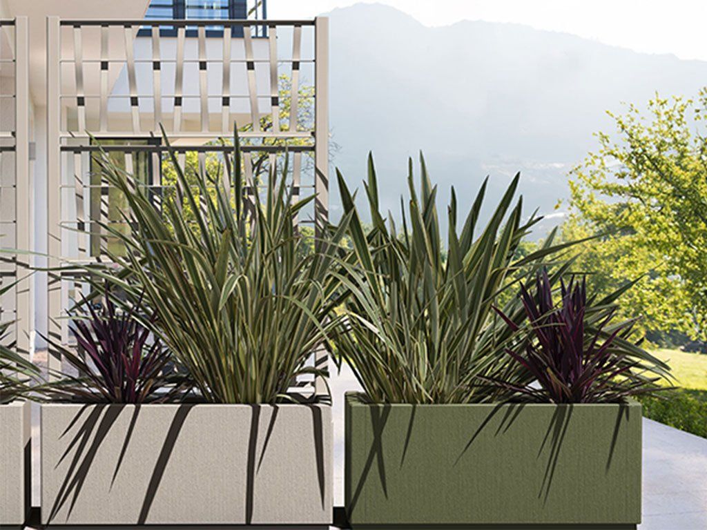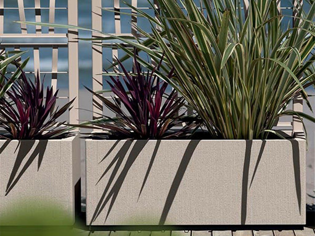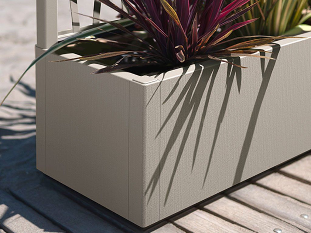 Kvetináč s drenážnym dnom, na vonkajšie použitie, z polypropylénu, farba krémovo biela, s objemom 80l, rozmery 80x36x35cm.