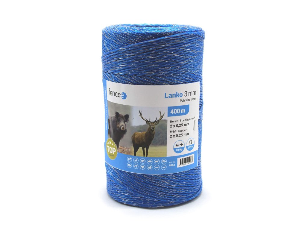 Vysoko kvalitné vodivé lanko určené na univerzálne použitie u elektrických ohradníkov. Z pevného materiálu, odolného proti roztrhnutiu. Odpor iba 0,17 Ω/m. Možno použiť aj pre dlhé ohrady. Signálna farba , dobre viditeľná pre lesnú zver. Dva medené vodiče vo vnútri pre maximálnu vodivosť . Určené na univerzálne použitie u elektrických ohradníkov. Pre bežné, ale aj náročné inštalácie. Špičková kvalita.