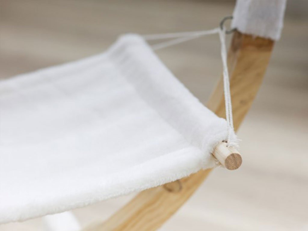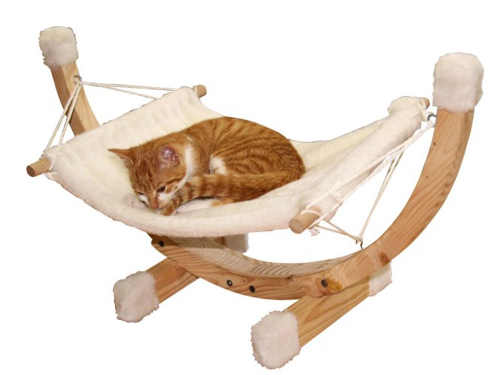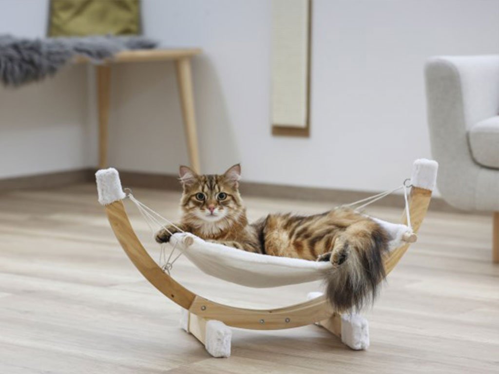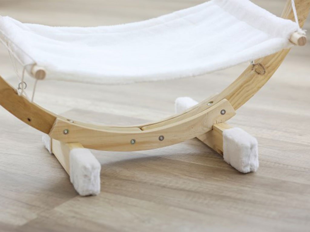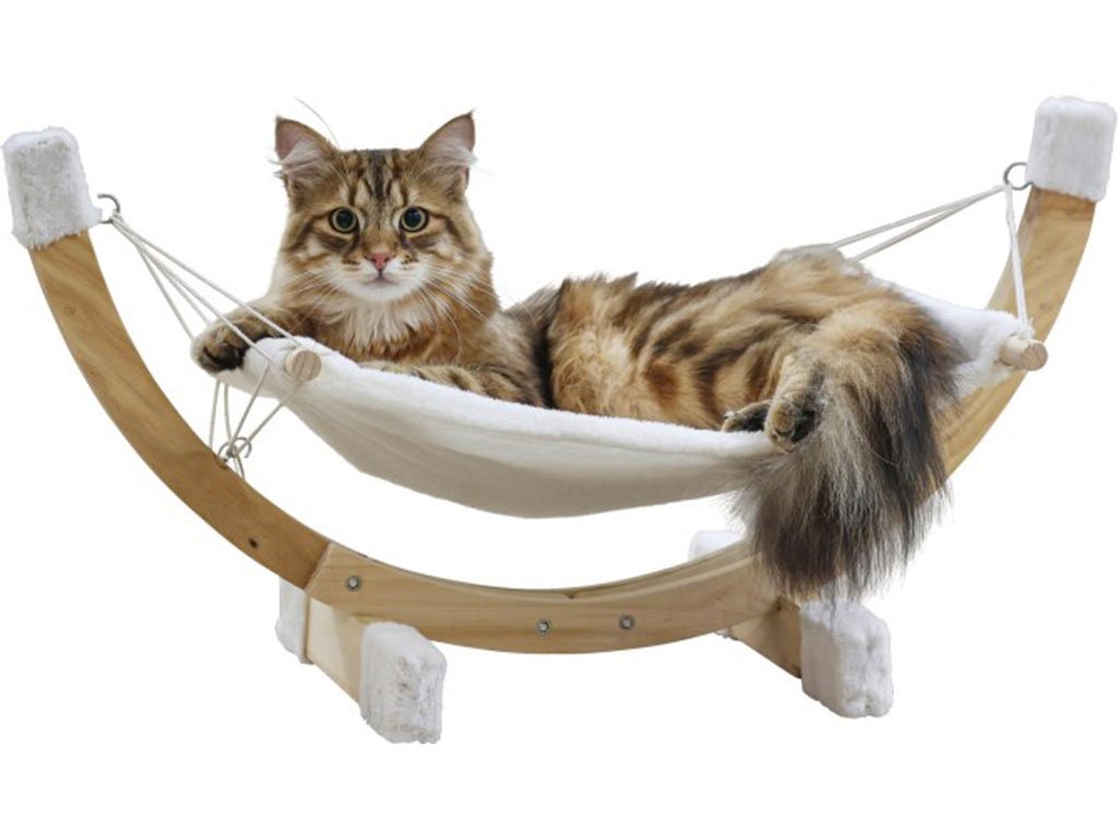 Senzačné hojdacie lehátko pre mačky s robustnou drevenou konštrukciou a príjemným plyšovým poťahom. Jedná sa o štýlový kúsok, ktorý si zamilujú všetky rozverné labky, ktoré aj rady odpočívajú. Lehátko pre mačku predstavuje miesto na šantenie a poslúži aj ako pohodlný pelech, z ktorého mačka môže pozorovať okolité dianie a spokojne driemať.