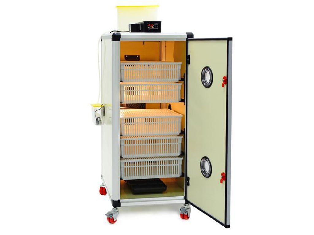 Liaheň na vajcia vhodná na liahnutie vodnej a hrabavej hydiny, s manuálnym otáčaním, s kapacitou liahnutie až 175 slepačích vajec (univerzálne košíky pre všetky druhy hydiny), s kontrolným alarmom teploty a vlhkosti, s automatickou reguláciou teploty (digitálne nastavenie s presnosťou na 0,1 ° C), s automatickou reguláciou vlhkosti (digitálne nastavenie s presnosťou na 1%), s teplomerom a vlhkomerom, s vnútorným osvetlením a externým čidlom izbovej teploty.