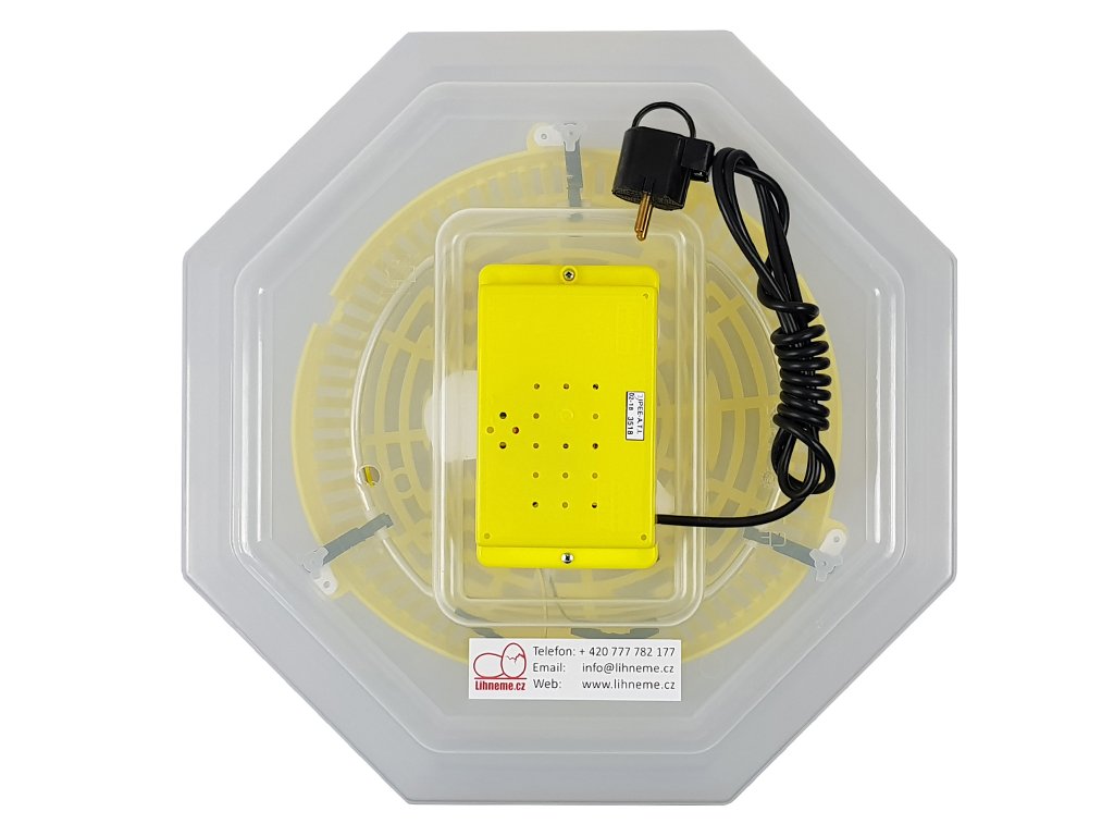 Liaheň na vajcia vhodná k liahnutiu vodnej-hrabavej hydiny, s manuálnym (ručným) otáčaním, kapacita 60 slepačích vajec, možnosť prikúpiť otočný rošt, s manuálnou reguláciou teploty od 35 do 40 ° C, s manuálnou reguláciou vlhkosti, bez teplomera, bez vlhkomera.