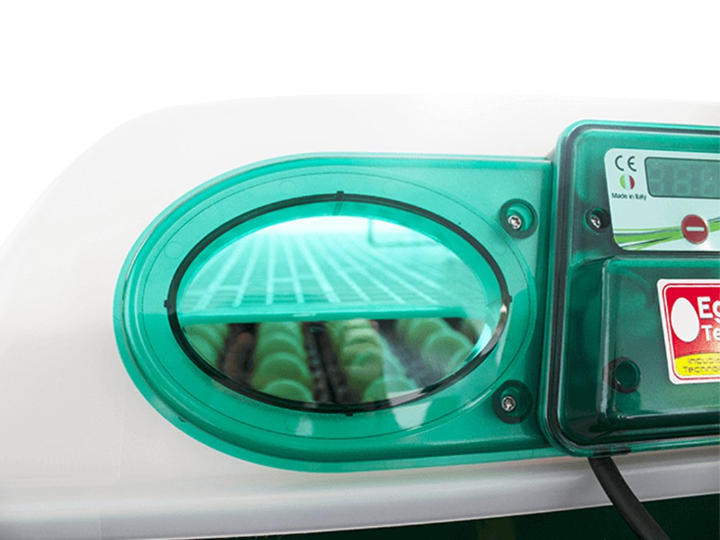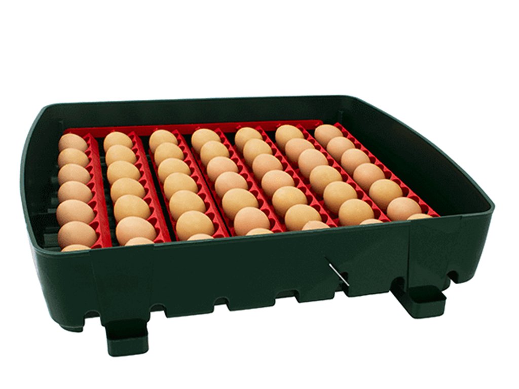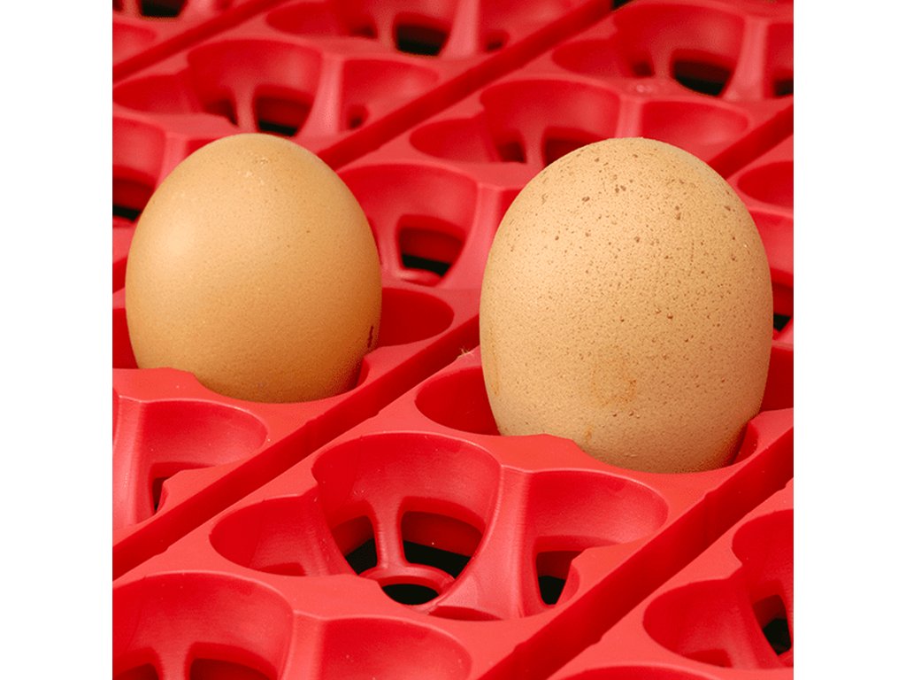 Kapacita s otočným roštom: 49 slepačích, 196 prepeličích, 49 husacích, 49 kačacích alebo 49 bažantích vajec.