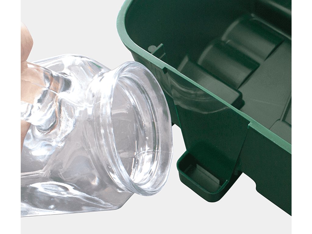 Vlhkosť v liahni sa reguluje ručne pridávaním vody do vonkajších otvorov, ktoré vedú vodu do nádrží umiestnených pod základňou (plastová mriežka) v spodnej časti liahne. Táto voda sa odparuje a vytvára požadovanú vlhkosť v liahni. S vodou v jednej nádrži dosahuje vlhkosť 45 - 55 %, zatiaľ čo s vodou v oboch nádržiach sa vlhkosť zvyšuje na 60 - 65 %. Na dosiahnutie optimálnych výsledkov sa odporúča dopĺňať vodu pri teplote 25 - 30 °C, pretože studená voda by mohla narušiť podmienky v liahni. Tento systém umožňuje jednoduchú reguláciu vlhkosti bez otvorenia liahne, čo pomáha udržiavať stabilnú mikroklímu na ideálne liahnutie.