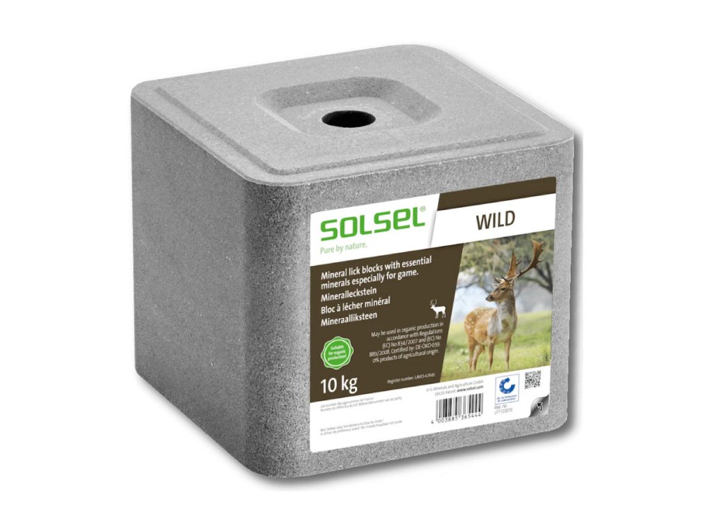 Soľný liz SOLSEL Wild je určený na doplnenie sodíka a esenciálnych minerálnych látok u voľne žijúcej zveri – vhodný pre daniely, jelene, diviaky aj ostatnú škárnatú zver . Vhodný aj pre použitie v ekologickom poľnohospodárstve – nesie certifikáciu BIO/EKO. Zver, najmä čierna zver, srnci a jelene, sú vo voľnej prírode odkázaní na prirodzený prísun sodíka a stopových prvkov, ktorý však často nestačí. Umiestnením minerálnych lizov na vhodné stanovište môže poľovník cielene doplniť tieto chýbajúce živiny v prostredí výskytu zveri a zamedziť okusom.