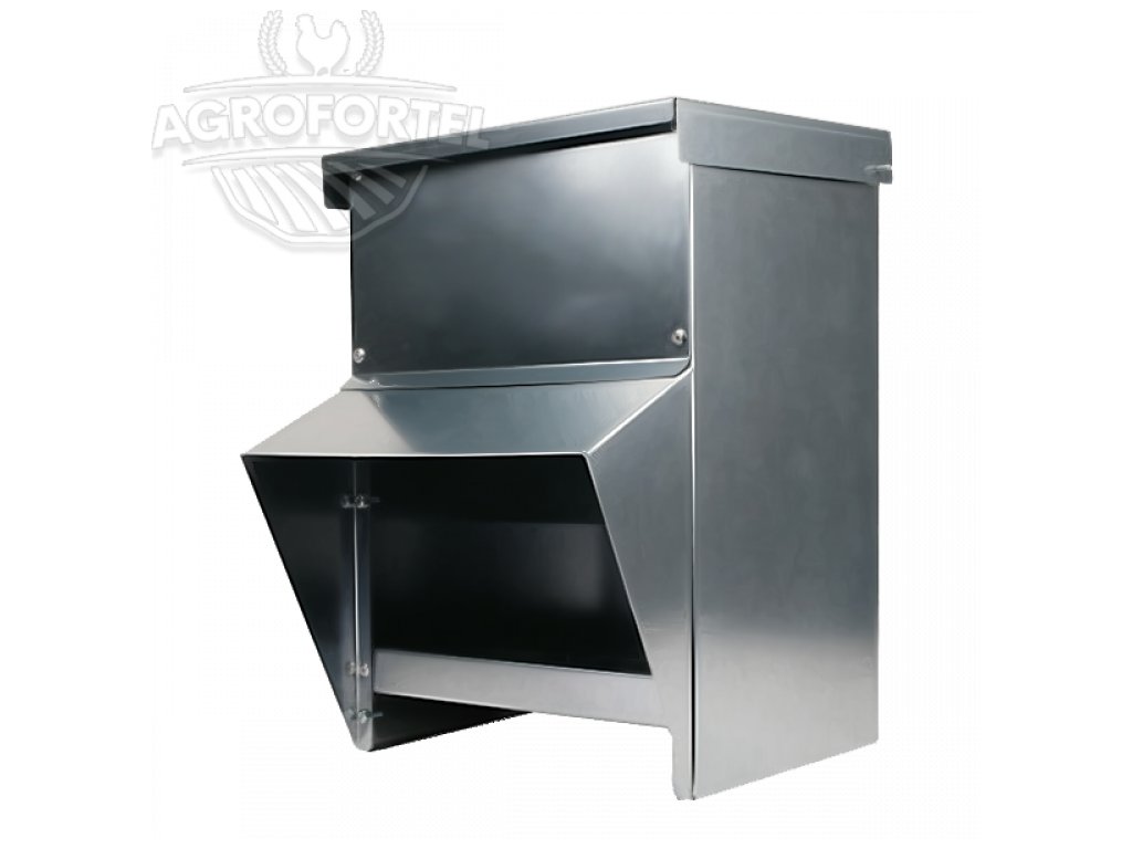 Kvalitné násypné krmítko značky AGROFORTEL s objemom 8 kilogramov. Objem 8 kilogramov vystačí pre 8-12 sliepok. Vyrobené z kvalitného pozinkovaného plechu. Veľmi jednoduché dopĺňanie.