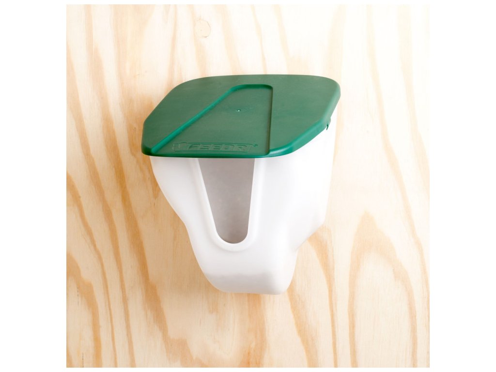 Kŕmidlo V-Feedr je jedným z najnovších modelov kŕmidiel. Má tri časti, ktoré je možné ľahko zložiť dohromady. Vďaka priloženému nástennému držiaku môžete produkt rýchlo a ľahko zavesiť. Kŕmidlo má veko, takže je možné ho používať ako vo vnútri, tak aj vonku.