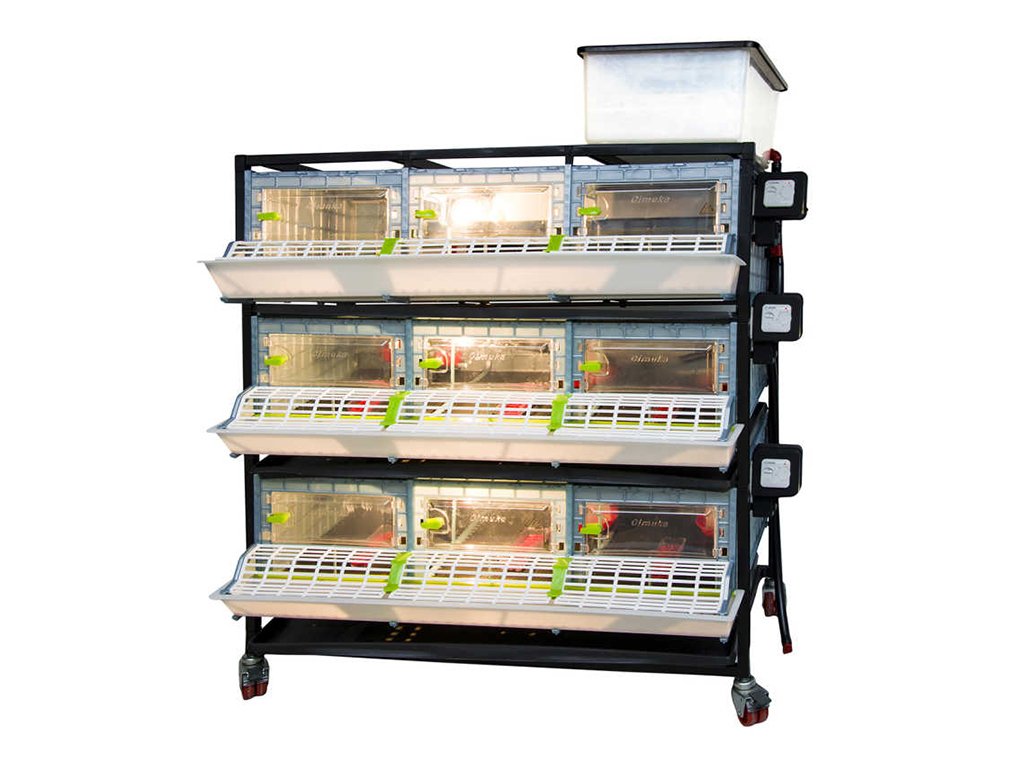 Odchovňa hydiny vhodná k chovu pre 120 až 135ks kurčiat s patentovanou technológiou Comfortplast s rozmermi 104 x 60 x 132 cm. Jedná sa o 3 poschodovú klietku s 3 oddiely, ktoré sú vybavené ohrevnou lištou s nastaviteľným termostatom a výstupom na žiarovku, krmítkami s mriežkou proti plytvaniu krmiva, napájačkami s prívodom vody z 20 litrového zásobníka.