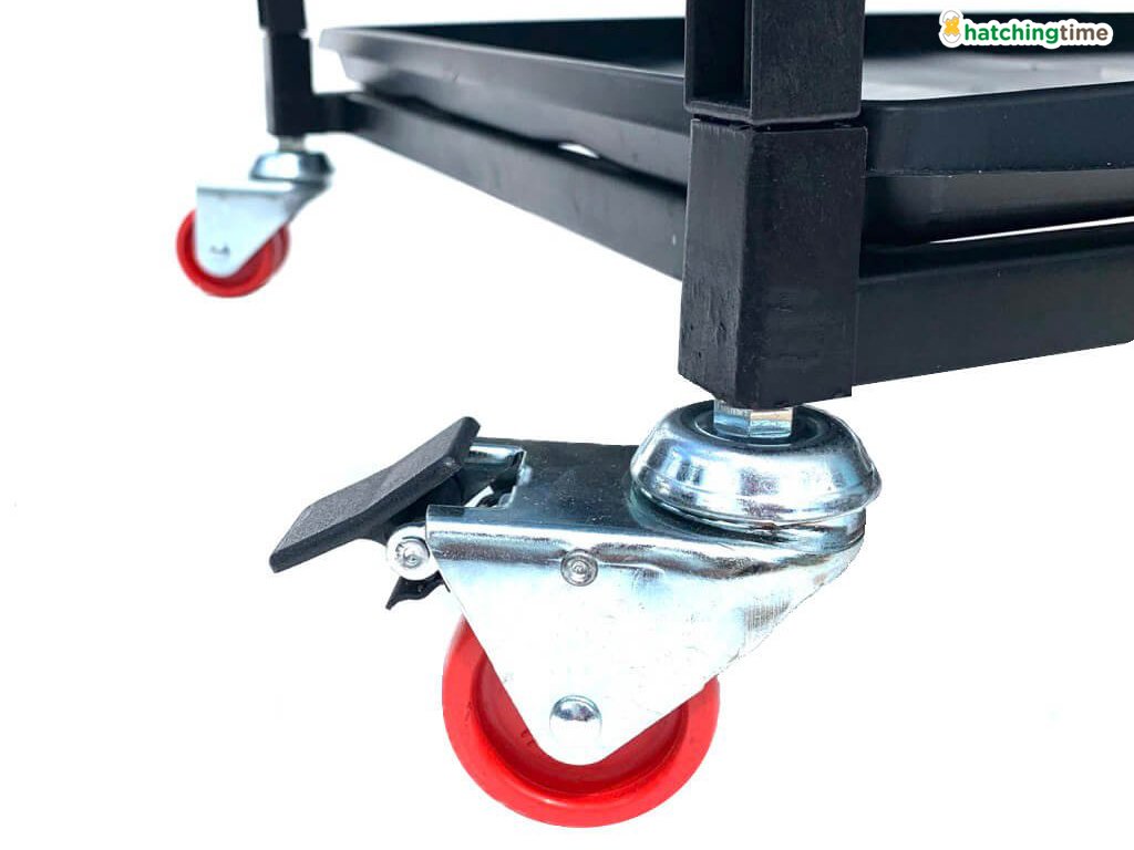 Rozmery zloženej odchovne hydiny vrátane koliesok, nádržky na vodu, ohrevnej jednotky a krmítka sú 104 x 64 x 73 cm.
