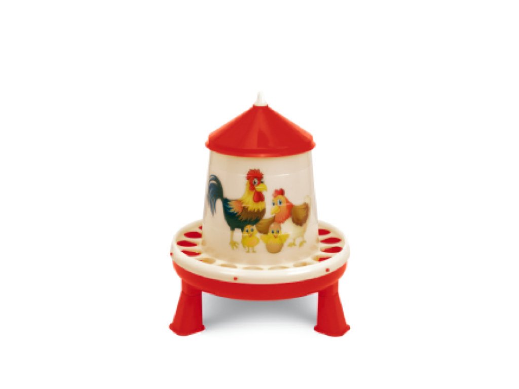 Plastové krmítko s nožičkami - rada ŠŤASTNÉ SLEPICE 4 kg - červené - 11367