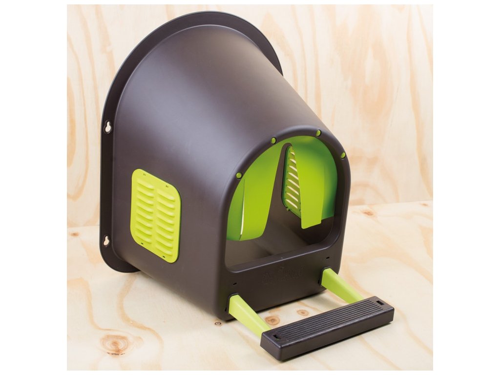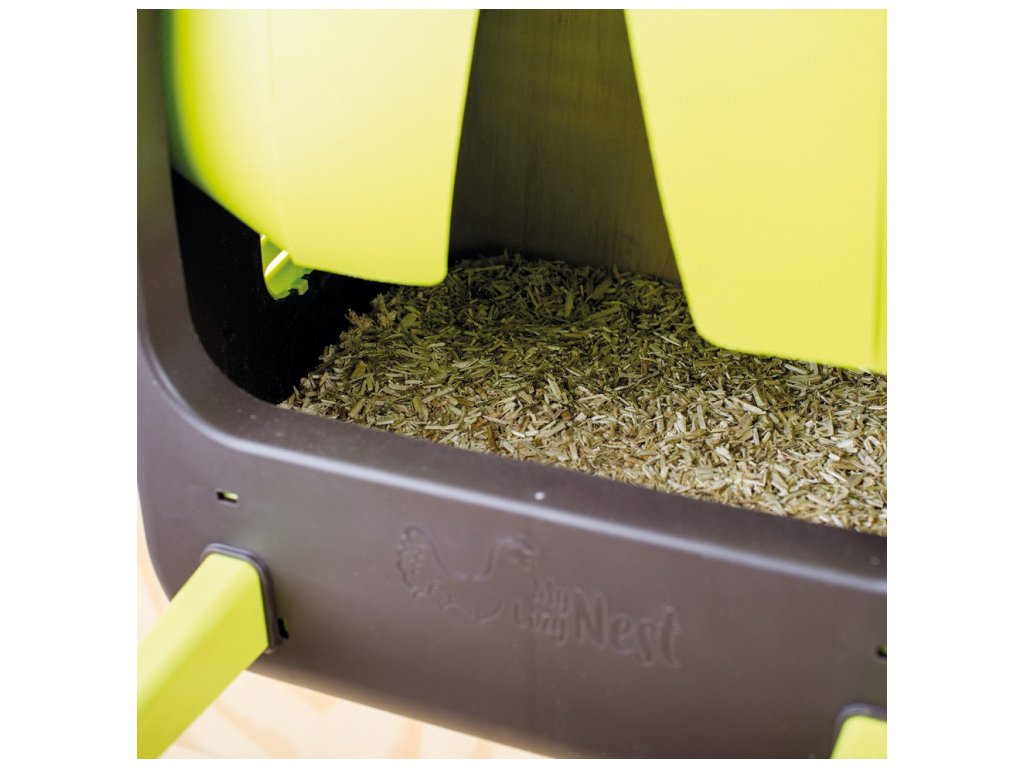 Hniezdo je vyrobené z kvalitného polypropylénu v trendy hnedej a limetkovo zelenej. Materiál a tvar uľahčujú čistenie hniezda. Výška okraja a tvar hniezda zaisťujú, že sliepka nemôže podstielku z hniezda vyhádzať.