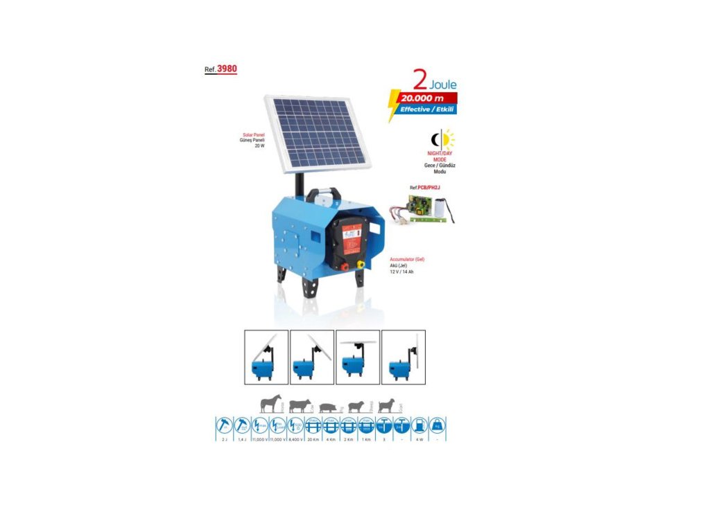 PUHU set pre elektrický ohradník 2J Akumulátor gél (12V/14Ah) + solárny panel 20W