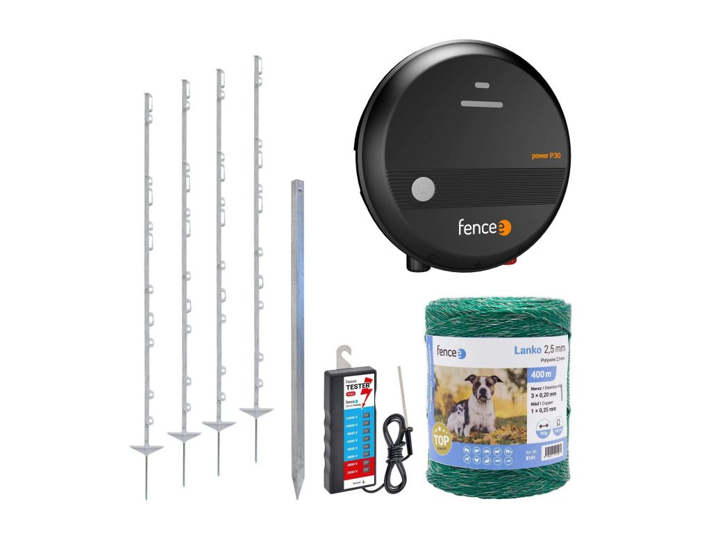 Súprava elektrického ohradníka na vymedzenie priestoru pre zvieratá, ako sú ovce, kozy a dobytok. Vďaka elektrickému ohradníku sa môžu zvieratá voľne pohybovať vo vymedzenom priestore, kde im nehrozí nebezpečenstvo. Ohradník vhodný aj na ochranu vašej úrody a pozemkov pred lesnou zverou, jelene. Možno použiť aj na ochranu vinohradu pred srnkami alebo na ochranu pozemku pred diviakmi.Základ kompletného setu tvorí bezúdržbový sieťový generátor elektrického ohradníka fencee power P30. Zdroj je so svojím výkonom 3 J vhodný pre ohrady s dĺžkou inštalácie až 29 km. Sieťový zdroj stačí zapojiť do zásuvky 230 V pomocou priloženého adaptéra a zapnúť ON/OFF tlačidlom.