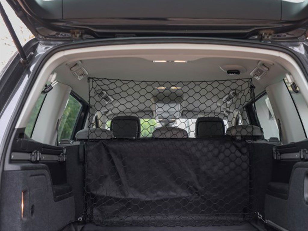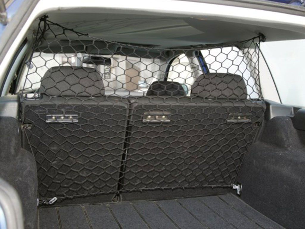 Sieť do auta pre psov, na inštaláciu v batožinovom priestore, pre všetky typy áut, ľahká konštrukcia, v rohoch je možné ľubovoľne posúvať, z nylonu, dĺžka obvodovej gumy cca 4,6 m.