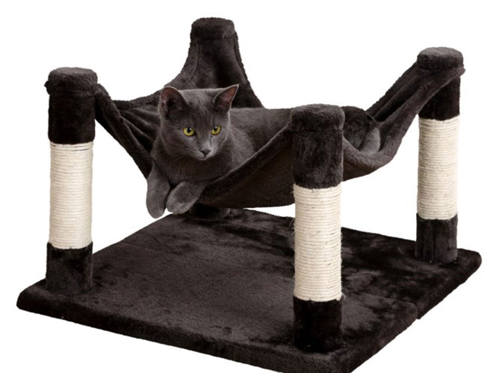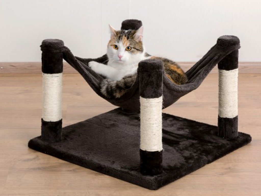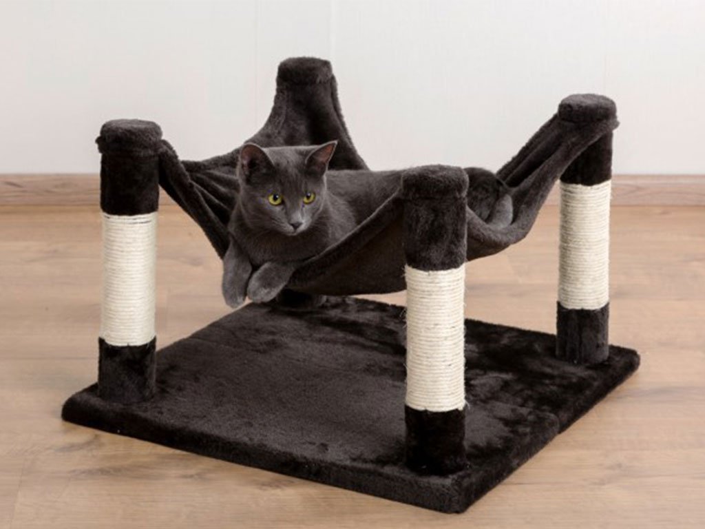 Praktické škrabadlo a odpočívadlo 2v1 z obľúbeného radu Samira 32x49x49 cm, s obľúbeným hojdacím lôžkom a škrabacími stĺpikmi v trendy lesklej antracitovej farbe. Škrabadlo menšej veľkosti zaberie v domácnosti minimum miesta a Vašej mačke poskytne toľko potrebné útočisko, ako na odpočinok tak na obrusovanie pazúrikov.