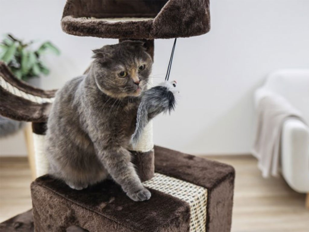 ✓ lůžko ✓ domeček ✓ kolébku ✓ tunel ✓ výklenek ✓ sloupky se sisalem ✓ hračky