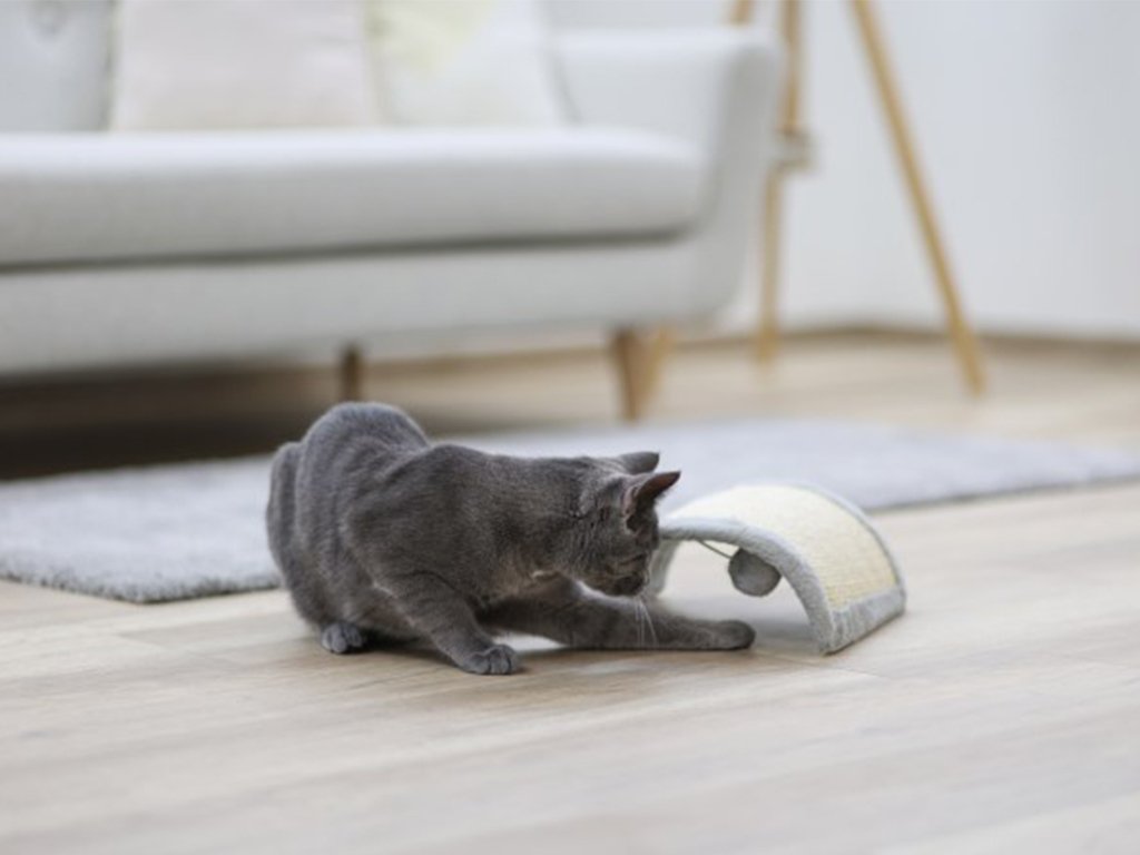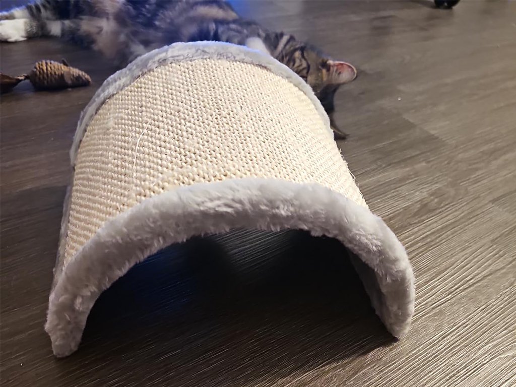Škrabadlo pre mačky má rozmery 26 x 22 x 11 cm, a tak poskytne dostatok miesta ako na škrabanie, tak aj na hru.