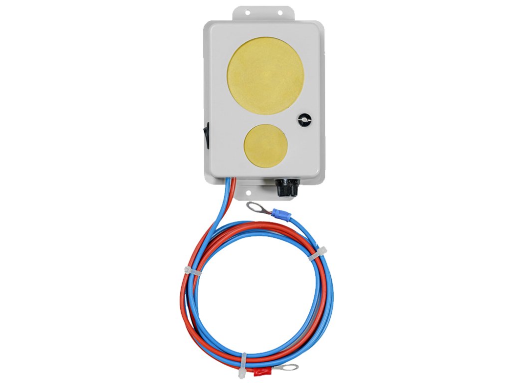 Zariadenie je napájané cez 2 konektory, ktoré sú súčasťou balenia, spolu s dvoma 100 cm dlhými káblami. Nemusíte sa báť, že by plašič kún vybil Vašu autobatériu. Za prevádzky má spotrebu maximálne 20 mA a pokiaľ by ste Vaše auto nevyužívali dlhšiu dobu, je možné plašič kún jednoducho vypnúť vypínačom.