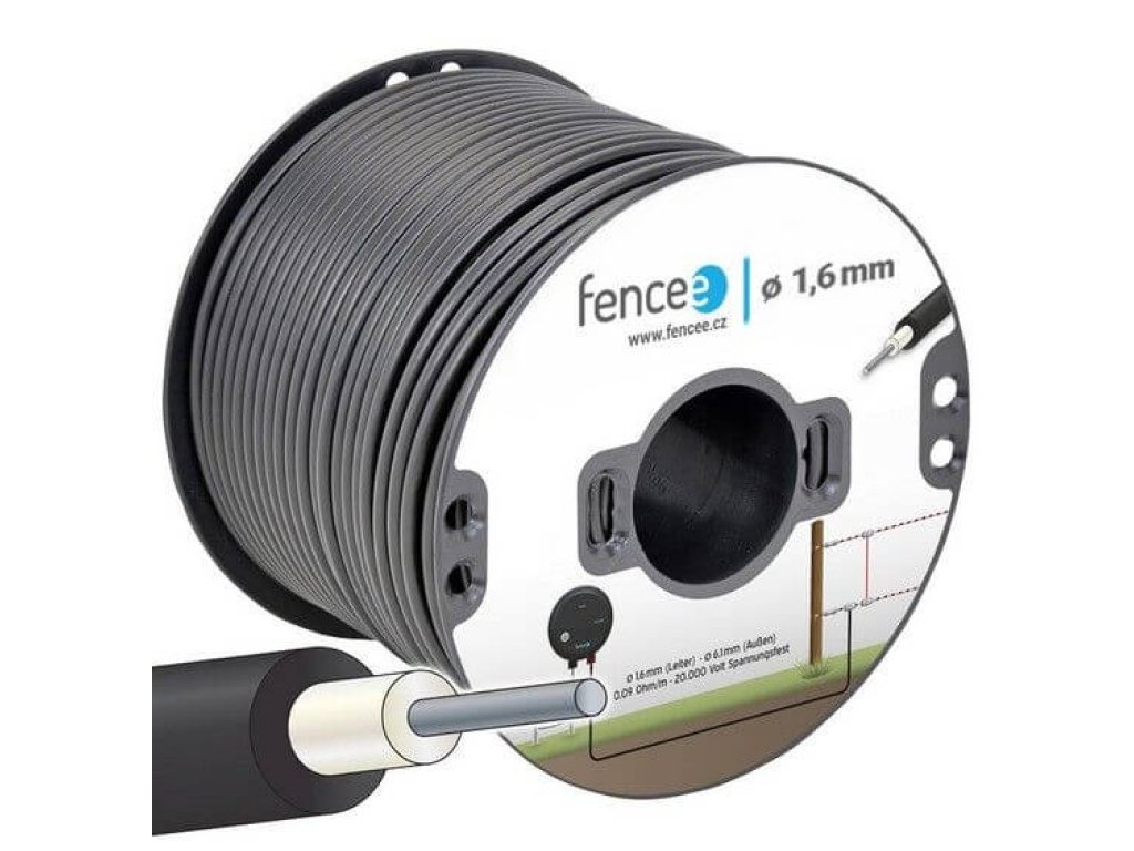 Vysokonapäťový oceľový kábel na napätie do 20 kV a na pripojenie elektrického ohradníka a jeho uzemnenie. Vhodný pre podzemné aj nadzemné vedenie do 100 m. Kábel je možné použiť ako prívodný aj ako zemniaci.Priemer jadra: 1,6 mm