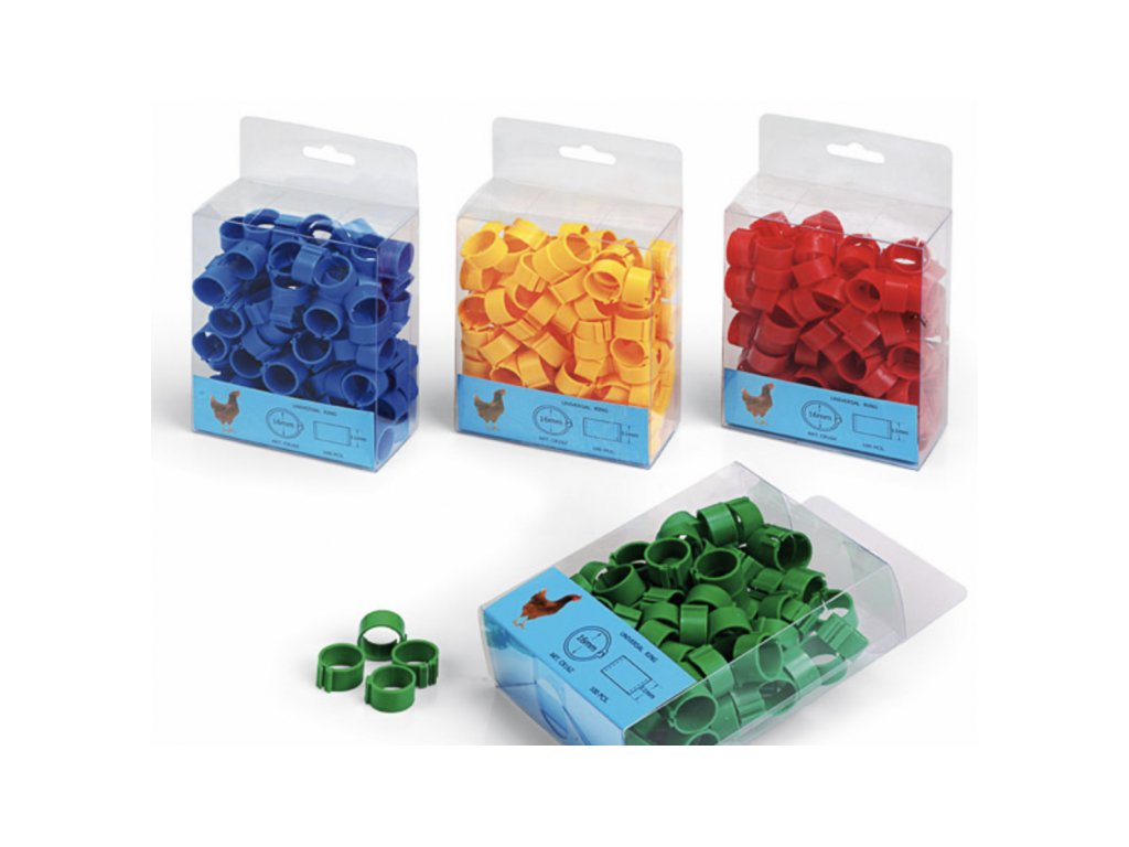 Zámkový krúžok na sliepky a kačice 16 mm 100 ks - plastový zámkový krúžok na orientačné značenie sliepok a kačíc. Krúžok má priemer 16 mm a výšku 11 mm.